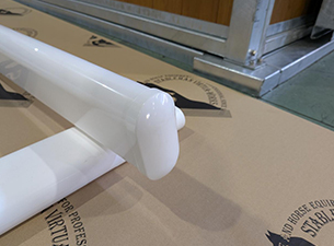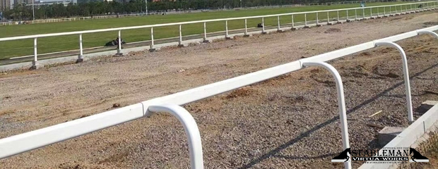 競馬場やトレセンの走路に用いる首の曲がったフェンスです。アンカーパイプを先に埋設しておく必要があります。